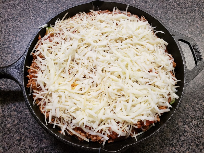 We absolutely love our Lodge Cast Iron Skillet. The meals are easy to prep and cook all in one. We might have gone a little overboard with the cheese but that is never a bad thing! You can choose to omit the zucchini for a thicker mixture. Either way, this deep dish cast iron keto lasagna will have you drooling!